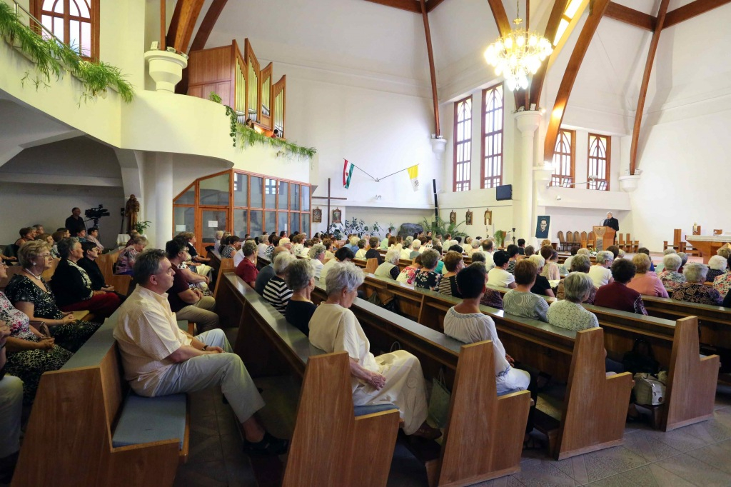 Seregély István előadásának második részét, amely a rózsafüzér-imádságról szólt, ismét egy provokatív kérdéssel kezdve: Mi köze az Eucharisztiához a Boldogasszony által a világ megmentésére kezünkbe adott imádságnak?